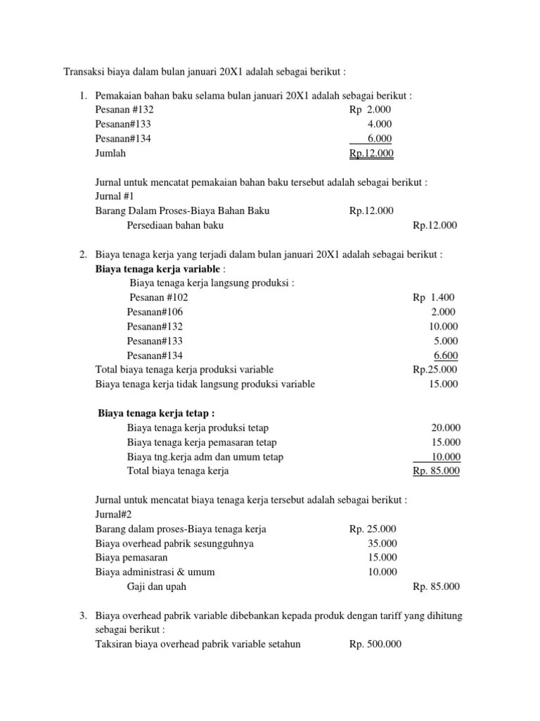 Metode perhitungan full costing, variable costing, contoh, pencatatan jurnal. Tujuan dari penelitian ini untuk menganalsisi dan memberikan gambaran dan masukan tentang apa dan bagaimana seharusnnya memperlakukan biaya overhead pabrik terhadap harga jual produk. Itulah penjelasan singkat mengenai beberapa contoh pencatatan biaya overhead pabrik dan … Dari ayat jurnal diatas dapat dilihat bahwa pencatatan biaya overhead pabrik tersebut sesungguhnya tidak berpengaruh terhadap rekening produk dalam proses. 29/10/2021 · biaya overhead pabrik adalah biaya sesungguhnya, aktual. Biaya overhead pabrik definisi biaya overhead pabrik banyak dikemukakan oleh ahli di bidang akuntansi salah satunya menurut usry & hammer (2012: Metode penelitian kuantitatif dengan teknis deskriptif analisis dengan populasi adalah sub sector usaha kecil menengah (ukm) yang berada di wilayah kota sukabumi. 2 biaya overhead pabrik sesungguhnya disingkat bops sedangkan biaya overhead pabrik dibebankan disingkat bopd. Biaya overhead pabrik (factory overhead) adalah semua biaya yang berhubungan dengan.